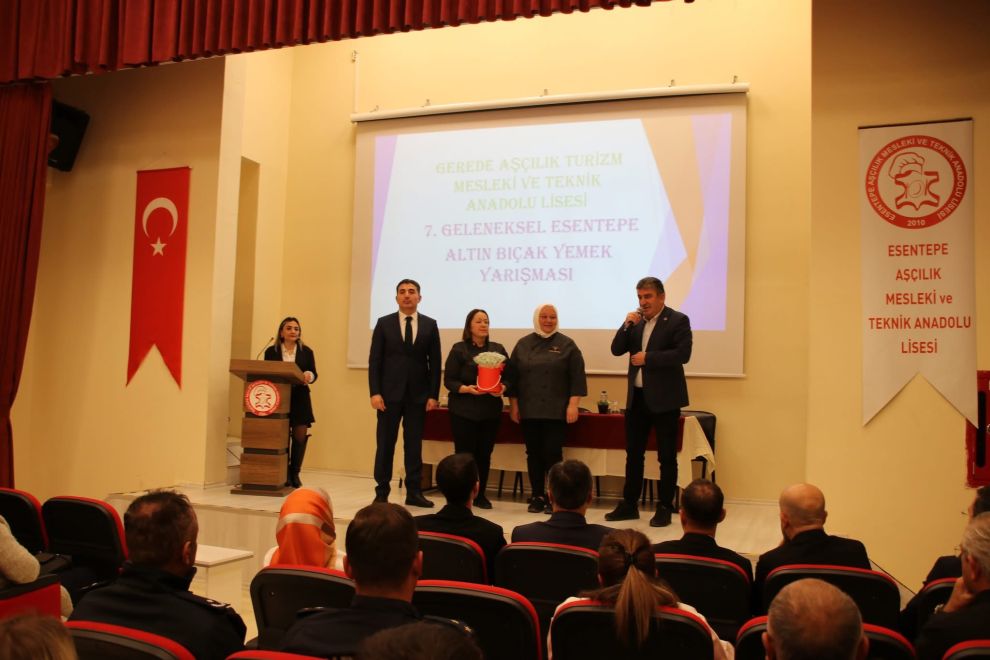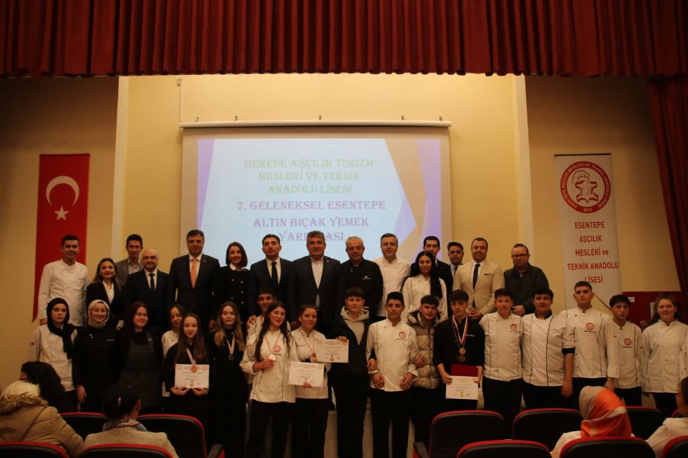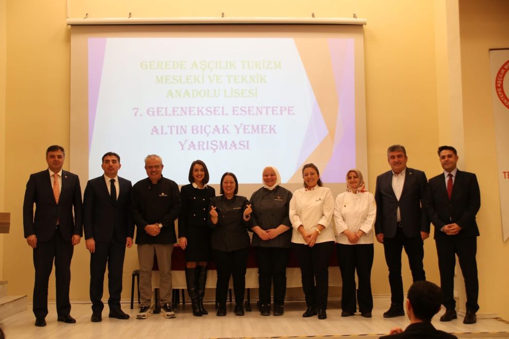 Gerede’de bu yıl yedincisi gerçekleştirilen Geleneksel Altın Bıçak Esentepe Aşçılık Yarışması, yoğun katılım ve yüksek bir başarıyla tamamlandı. Öğrenciler, hazırladıkları ana yemek ve tatlı tabaklarını alanında uzman jüri üyelerine sunarak profesyonel bir performans sergiledi.