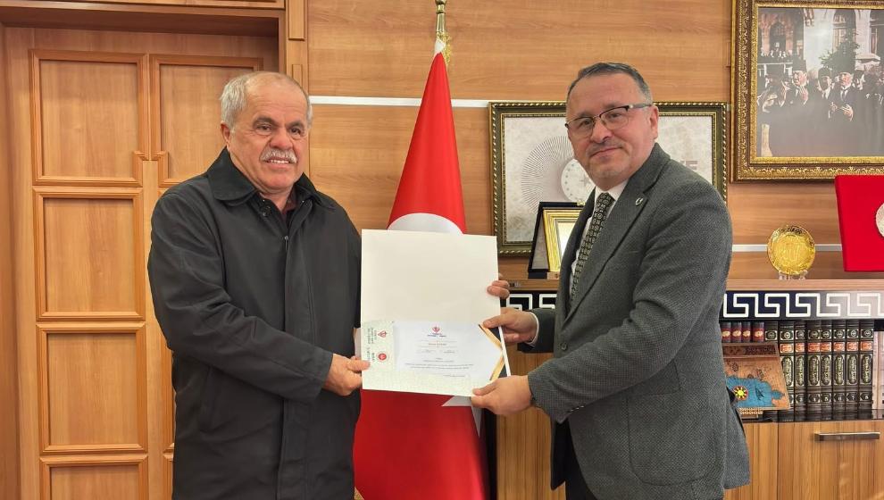 Bağış sırasında Muhtar Sabah’ı makamında ağırlayan Bolu İl Müftüsü Hüseyin Demirtaş, duyarlı davranıştan duyduğu memnuniyeti dile getirerek,