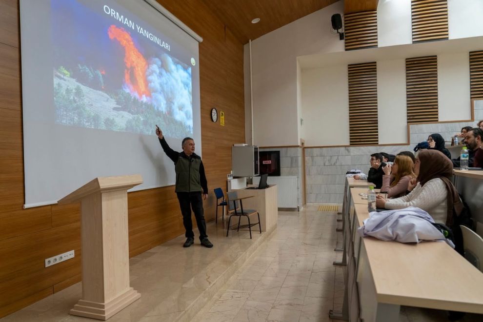 21 Mart Dünya Ormancılık Günü ve Orman Haftası kapsamında gerçekleştirilen konferans, Doç. Dr. Ayhan Çetinkaya’nın ev sahipliğinde yapıldı. Programda; ormanların hayati önemi, sürdürülebilir ormancılık, ağaçlandırma çalışmaları ve özellikle orman yangınlarıyla mücadele konuları detaylı şekilde ele alındı.