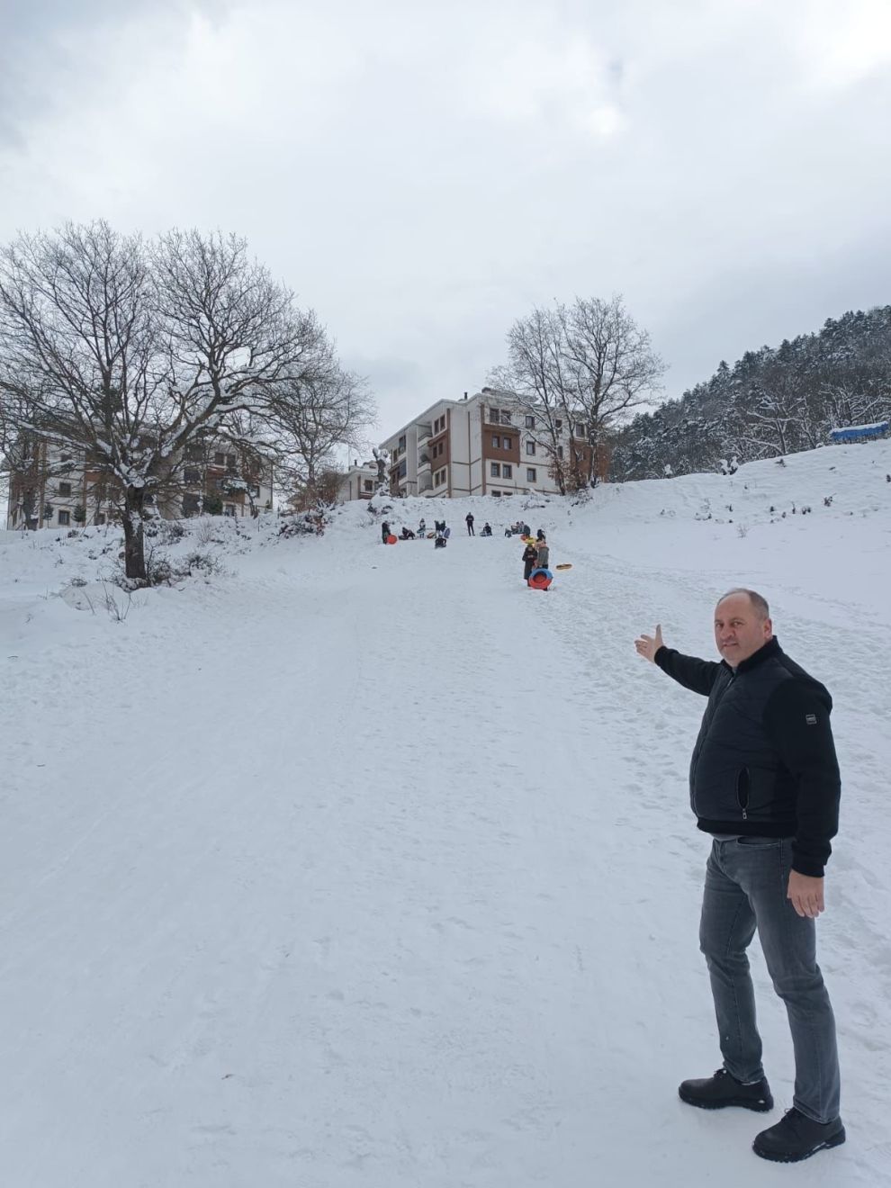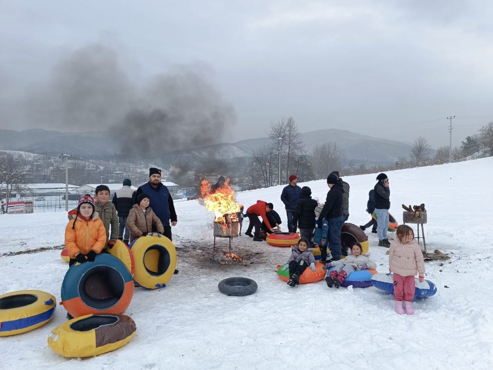 Taşkesti Belediye Başkanı Saim Çevik, beldede çocuklar için oluşturulan kayak alanını ziyaret etti. Başkan Çevik, karla kaplanan alanda şambrelini alarak kayan çocukların sevincine ortak oldu.