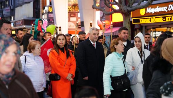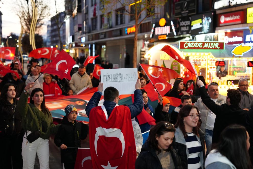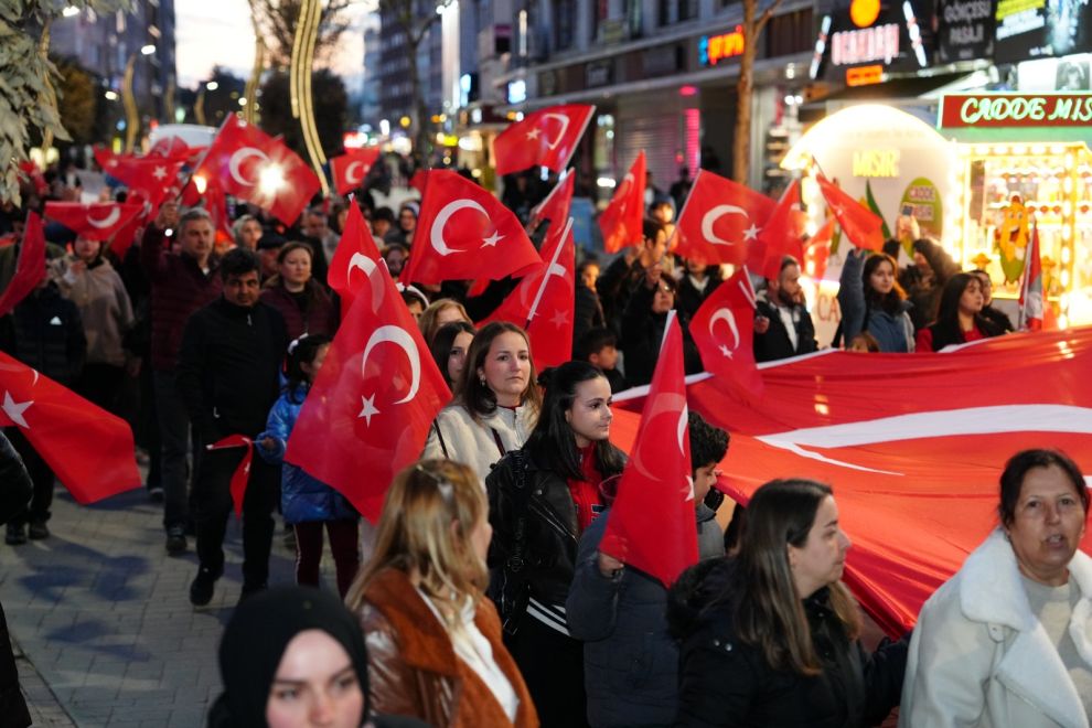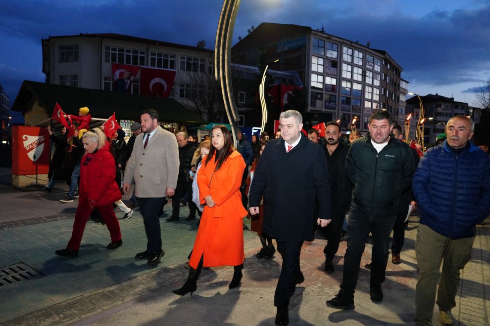 Bolu Belediyesi tarafından organize edilen etkinlikte vatandaşlar, Bolu Valiliği önünde bir araya geldi. Belediye bandosunun öncülüğünde başlayan yürüyüşte, katılımcılar ellerindeki meşaleler ve bayraklarla valilik önünden belediye binasına kadar yürüdü. Güzergâh boyunca iş yerlerinden ve evlerinin balkonlarından vatandaşlar korteje alkışlarla destek verdi.