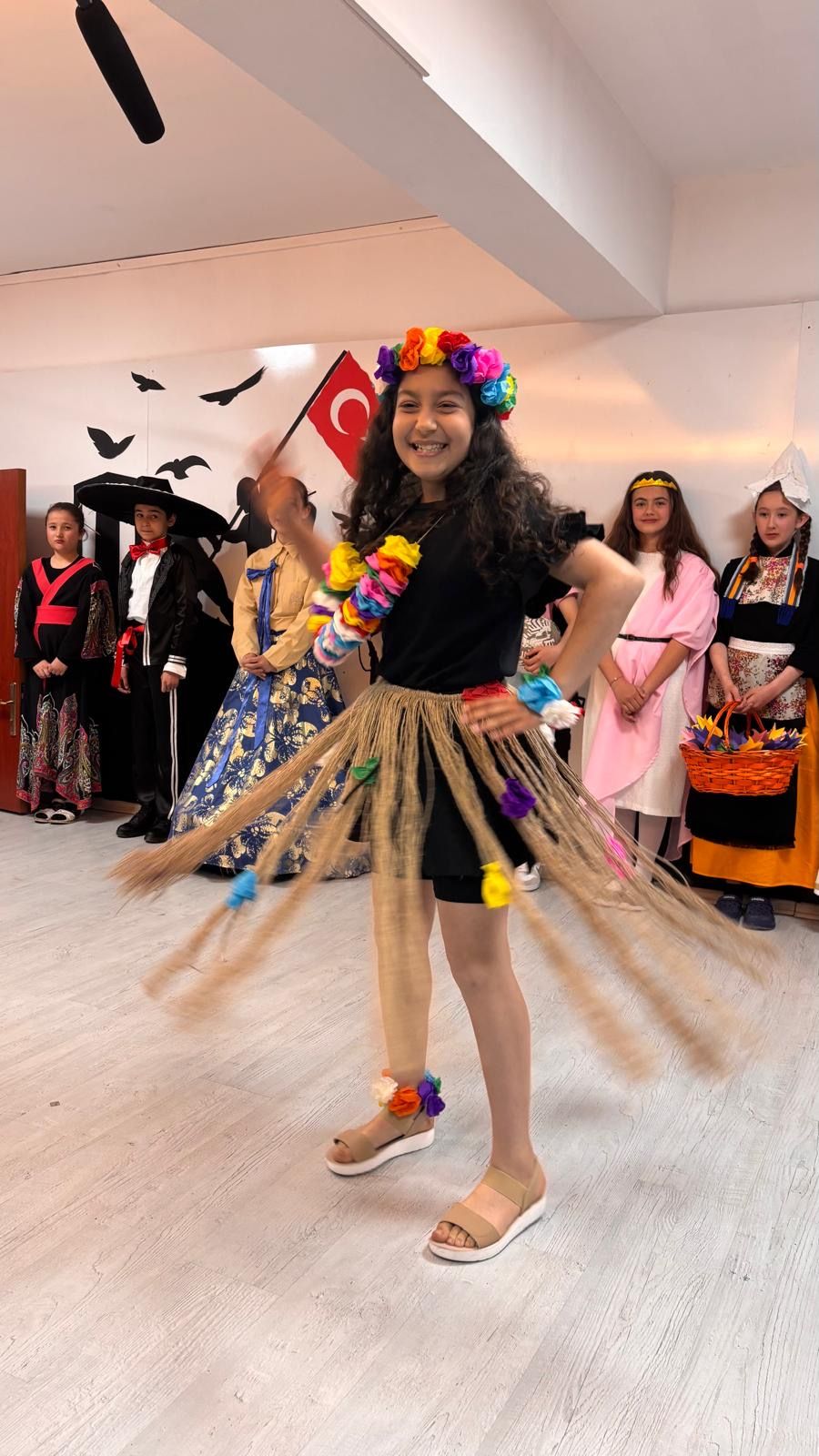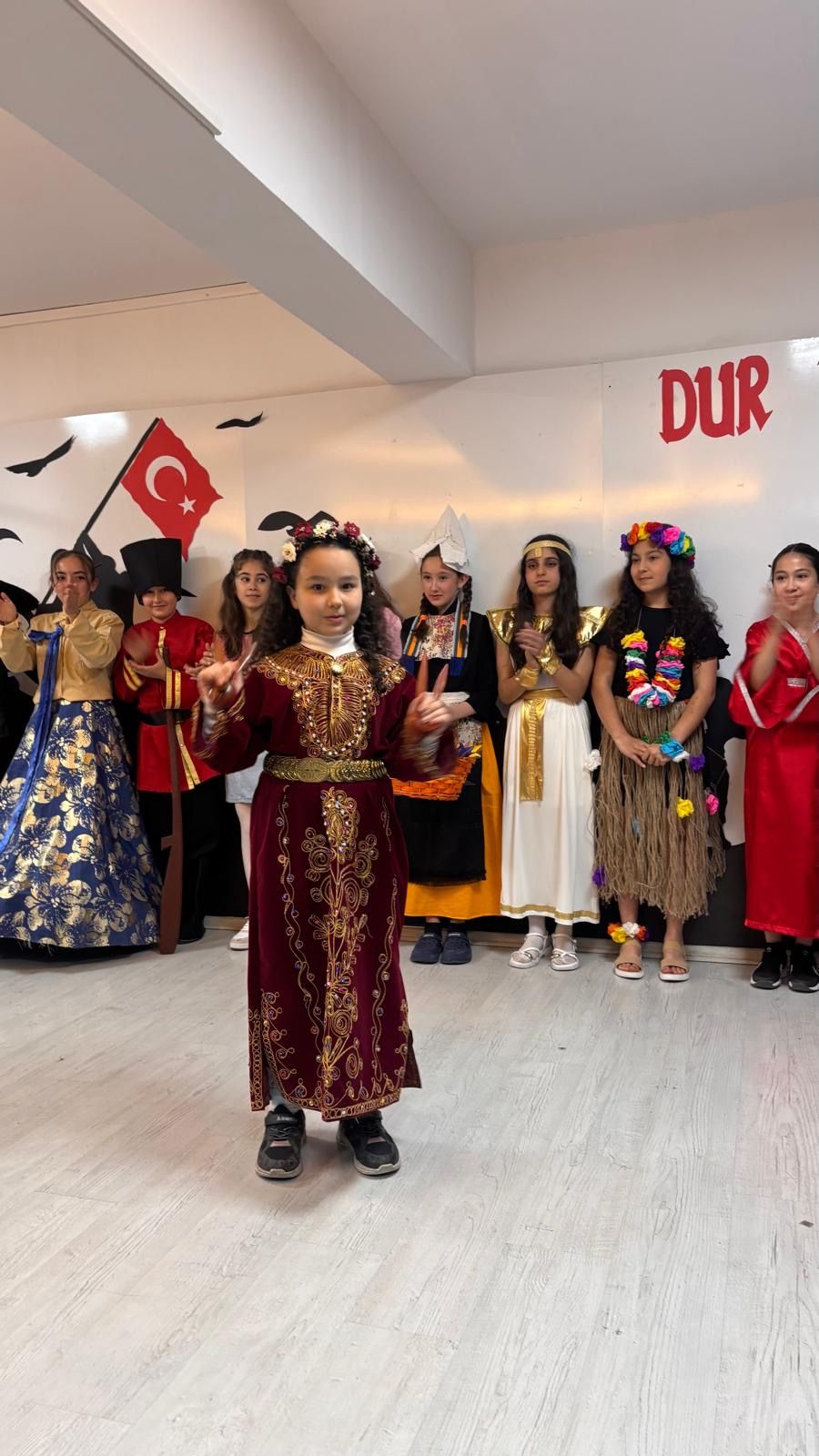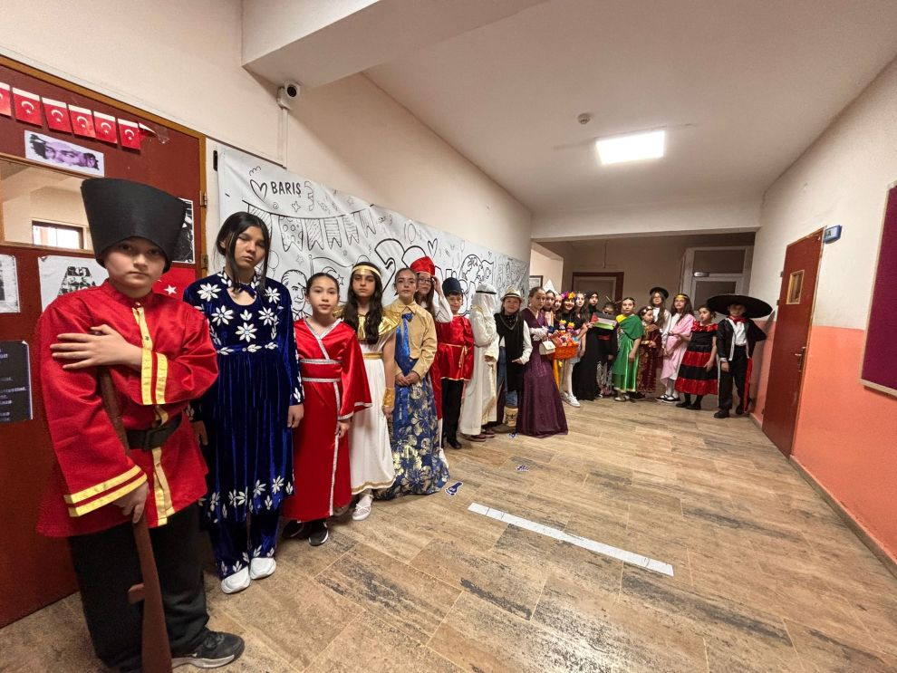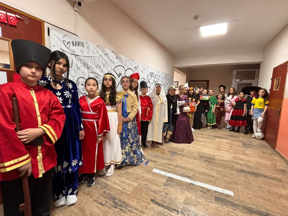 Günün en dikkat çeken bölümü ise “Dünya Çocukları Defilesi” oldu. Öğrenciler, farklı ülkelerin kültürlerini yansıtan kostümlerle sahneye çıkarak barış, kardeşlik ve kültürel çeşitlilik mesajı verdi. Renkli görüntülere sahne olan defile izleyicilerden büyük beğeni topladı.