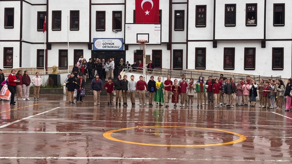 Bolu’nun Göynük ilçesinde Göynük Ortaokulu tarafından düzenlenen 23 Nisan Ulusal Egemenlik ve Çocuk Bayramı kutlama programında “Dünya Çocukları Defilesi” büyük ilgi gördü.