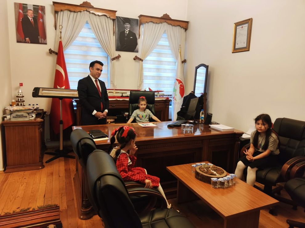23 Nisan etkinlikleri kapsamında temsili makam devir teslim töreni de gerçekleştirildi. Göynük Kaymakamı Talha Battal, makamını Ali Ericek İlkokulu öğrencisi Hanne Altıntaş’a devretti.