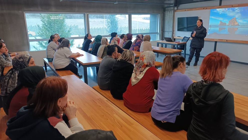 Aynı gün Asayiş Şube Müdürlüğü Aile İçi Şiddetle Mücadele ve Çocuk Kısım Amirliği ile Narkotik Şube Müdürlüğü personeli tarafından kadın çalışanların yoğun olduğu bir işyerinde görev yapan personele yönelik bilgilendirme faaliyeti icra edildi. Programda KADES uygulaması, şiddet durumunda alınabilecek tedbir kararları ve madde bağımlılığı ile mücadele konularında bilgi verilirken broşür dağıtımı gerçekleştirildi.
