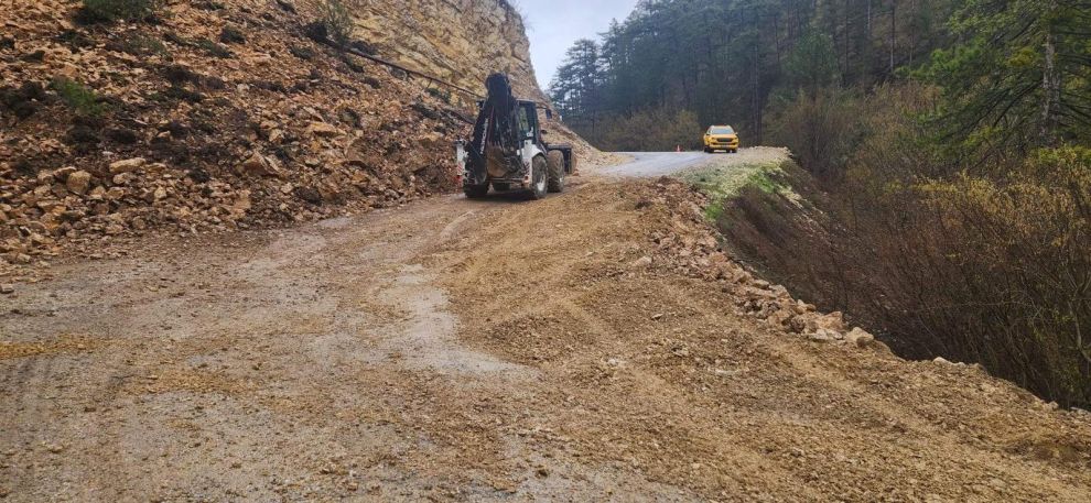 İlçe Özel İdaresi ekipleri tarafından bölgede yürütülen çalışmalarla yol üzerindeki toprak ve moloz temizlenerek ulaşım güvenli hale getirildi.