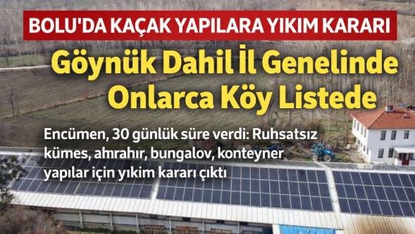 Yeniçağa ilçesi Dereköy’de N.A. tarafından yapılan ahır ile atölye için de yıkım kararı verildi. Her iki yapının da mühürlenmesine rağmen yasal süreçte ruhsatlandırılmadığı kaydedildi.