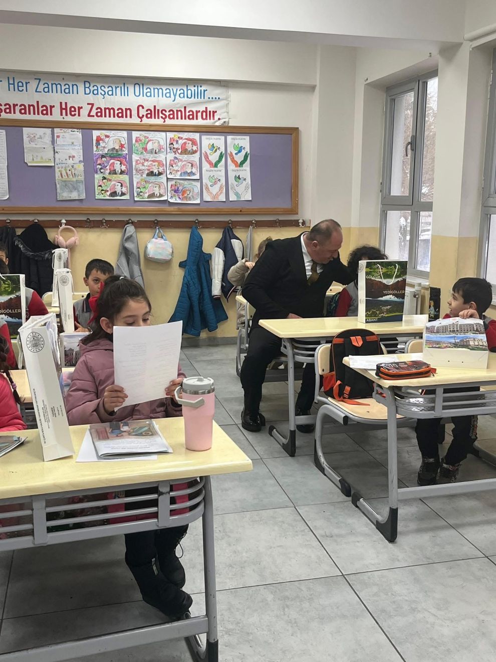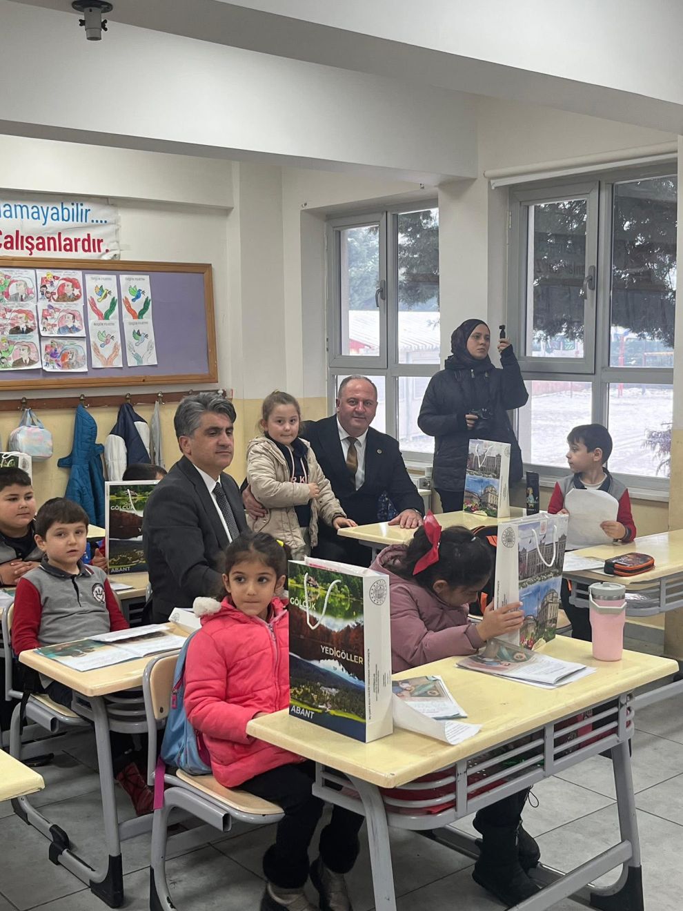 Bolu Valisi Abdulaziz Aydın, Mudurnu ilçesine bağlı Taşkesti İlkokulu 1. sınıf öğrencilerinin yeni yıl tebriklerini içeren mektuplarıyla yaptıkları davet üzerine okulu ziyaret etti.