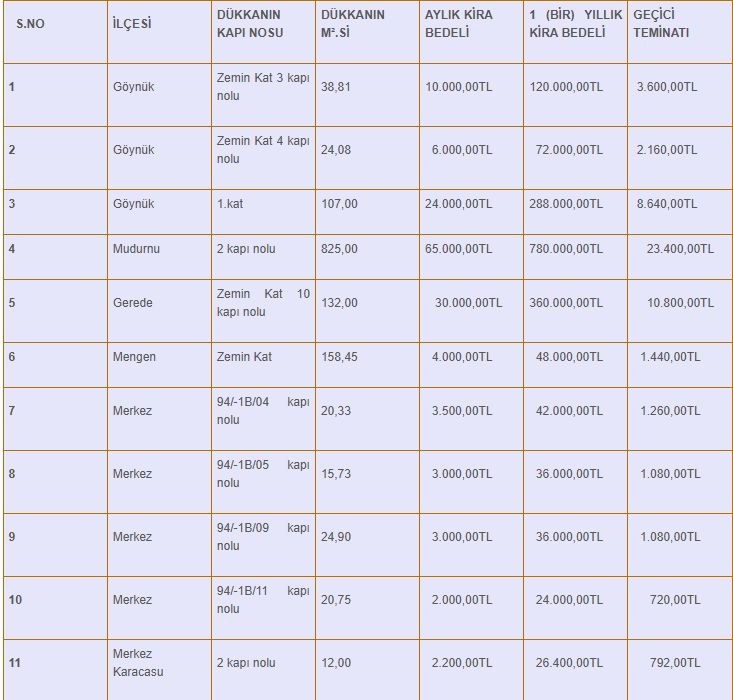 • Mengen İlçesi Türkbeyli Mahallesi 36 ada 14 parseldeki Eski Özel İdare Binasının zemin katı,