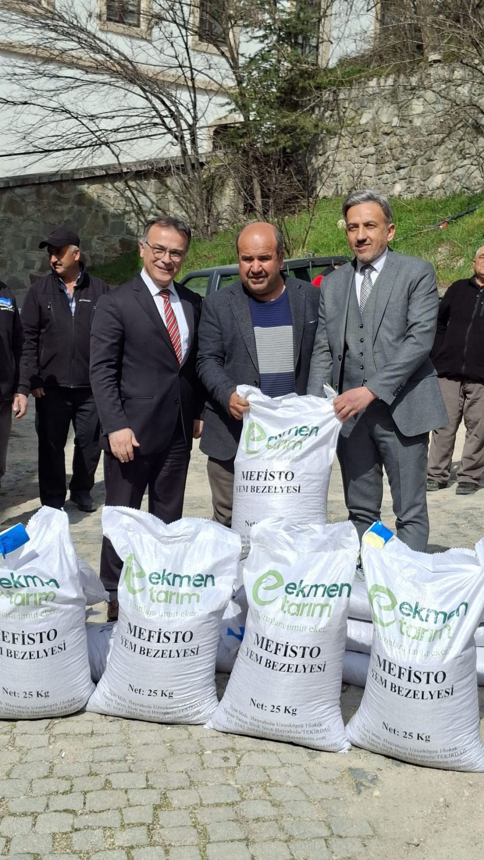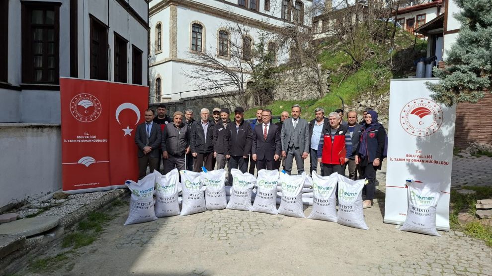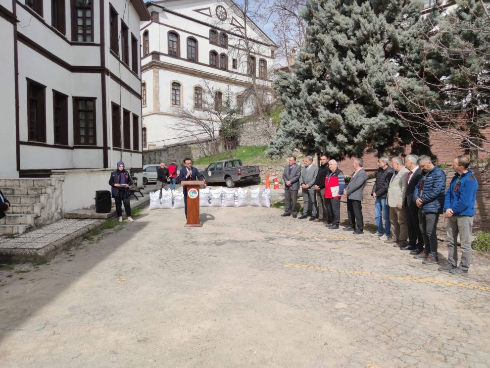 Bolu İl Özel İdaresi tarafından çiftçilere yönelik destekler kapsamında yem bezelyesi dağıtım töreni, Göynük Kaymakamlığı’nda düzenlendi.